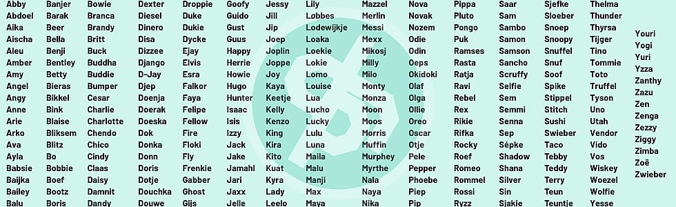 Op deze manier kunnen we de lijst samen uitbreiden en een heleboel puppy’s van een passende naam voorzien.