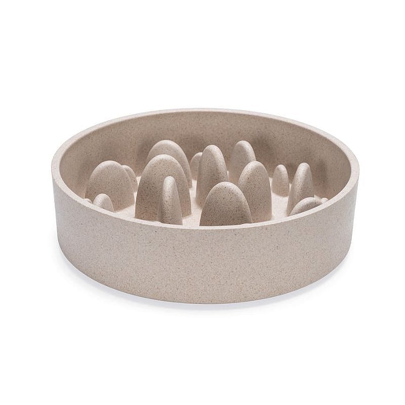 Door deze indeling ligt het eettempo doorgaans lager dan bij een standaard voerbak. Tijdens de maaltijd is de hond actief bezig met het bereiken van het voer. De voerbak is gemaakt van bamboe en heeft een natuurlijke uitstraling.