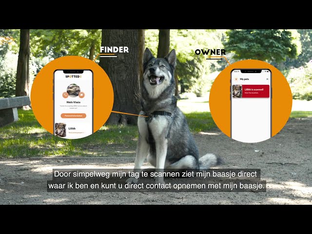- Wanneer iemand uw hond of kat tegenkomt (wereldwijd) en de tag scant met de camera op zijn of haar telefoon ontvangt u in de Spotted app direct een bericht waar uw hond of kat is.
